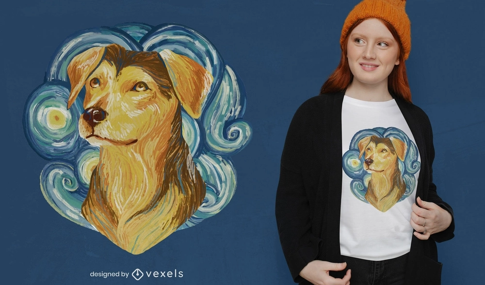 Design de t-shirt bonito com um cão ao estilo das pinturas pós-impressionismo. Pode ser usado em camisetas, moletons, canecas, cartazes e qualquer outra mercadoria. Pronto para uso em Merch by Amazon e outras plataformas de impressão sob demanda, como Redbubble, Teespring, Printful e outras.