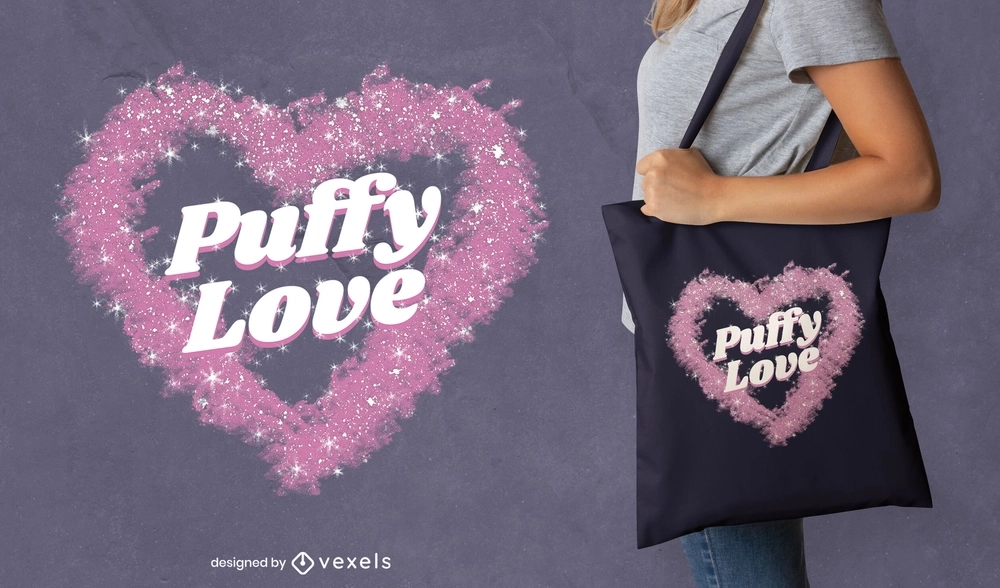 Design legal de sacola que apresenta um coração brilhante com a citação "Puffy love". Use este incrível design de sacola pronta para impressão ou editável para plataformas POD como Amazon Merch on Demand, Redbubble, Printful e muito mais.