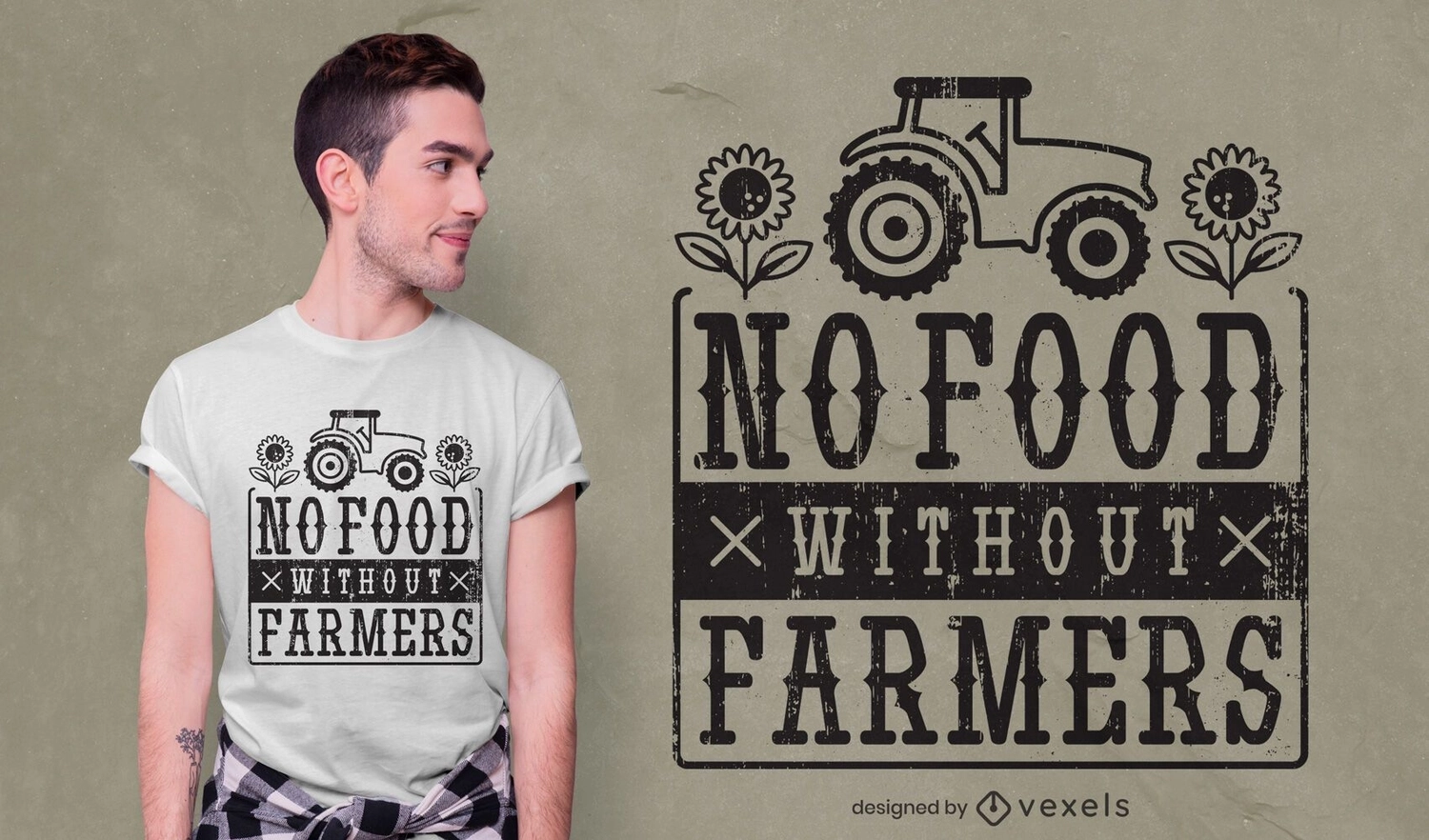 Projeto impressionante do t-shirt que caracteriza as citações "nenhum alimento sem fazendeiros". Este design gráfico da T pode ser usado em camisas canecas pôsteres hoodies e outros produtos merch. Vem com um arquivo PNG transparente perfeito para plataformas POD como Merch by Amazon Redbubble Teespring Printful e muito mais