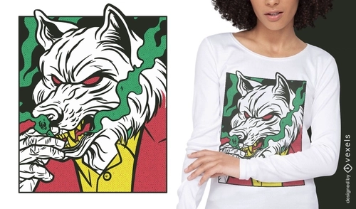 Design impressionante do t-shirt que caracteriza um lobo irritado em um terno que fuma um cigarro. Pode ser usado em camisetas, moletons, canecas, pôsteres e qualquer outra mercadoria. Pronto para usar no Merch by Amazon e outras plataformas de impressão sob demanda, como Redbubble, Teespring, Printful e outras.