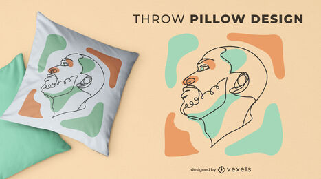 Design de travesseiro com linha contínua para rosto masculino