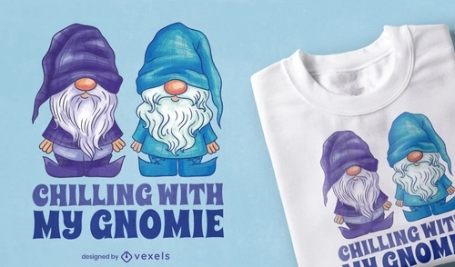 Olhe este design legal do t-shirt que representa dois gnomos e as citações "refrigerando com meu gnomo". Este design gráfico da T pode ser usado em camisas, canecas, pôsteres, hoodies e outros produtos merch. Vem com um arquivo PNG transparente, perfeito para plataformas POD como Merch da Amazon, Redbubble, Teespring, Printful e muito mais.