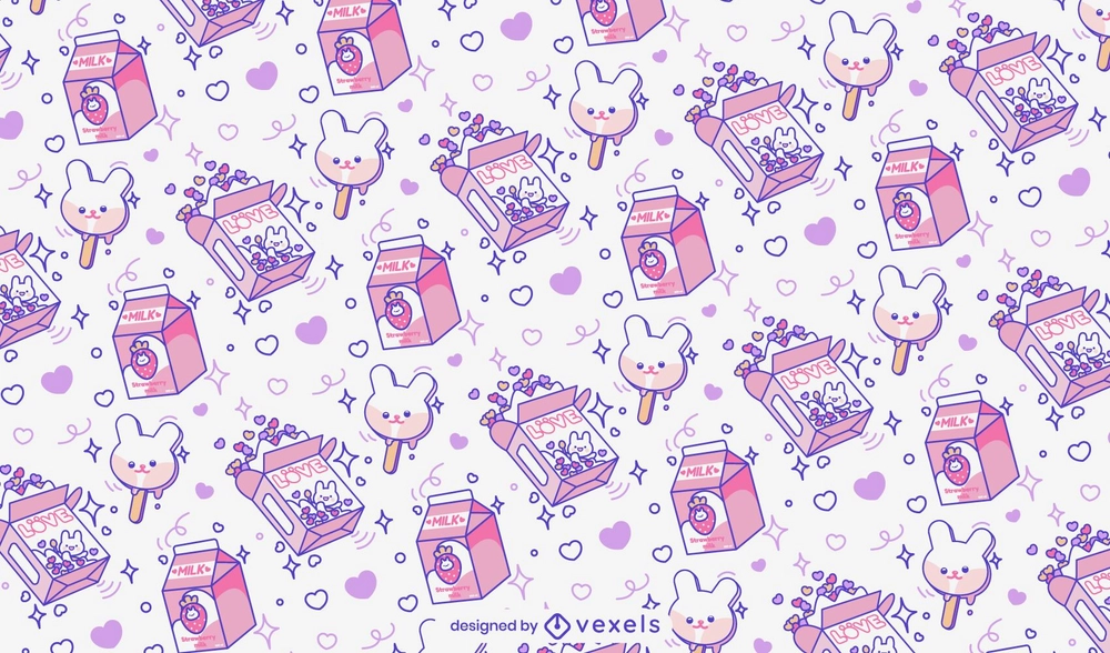Projeto bonito do teste padrão que apresenta alimentos doces, como leite de morango, doces e sorvete. Edite e use este design de padrão tileable para seus projetos de design, papéis de parede, fundos e muito mais.