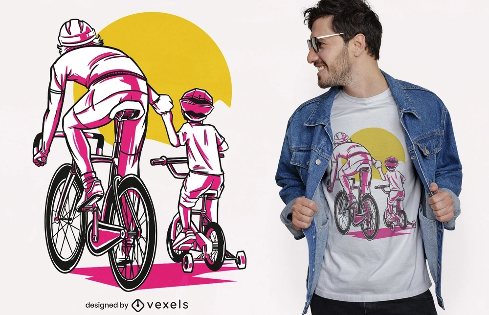 Design de camiseta incrível com pai e filho andando de bicicleta. Este design gráfico do T pode ser usado em camisas, canecas, cartazes, moletons e outros produtos merch. Vem com um arquivo PNG transparente, perfeito para plataformas POD como Merch by Amazon, Redbubble, Teespring, Printful e muito mais.