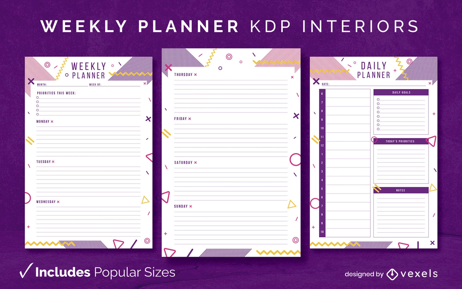 Modelo de diário do planejador semanal KDP Design de interiores
