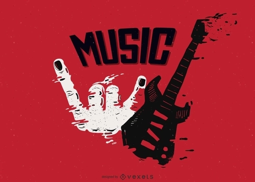 O design do tema musical funky contém um menino tocando guitarra alto-falante com fios equalizador barras sobrepostas em linhas sujas e onduladas meio-tom e fundo sujo em estilo vintage.